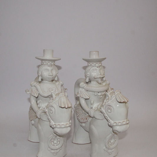 Coppia Cavalieri Porta Candela Bianco 30cm