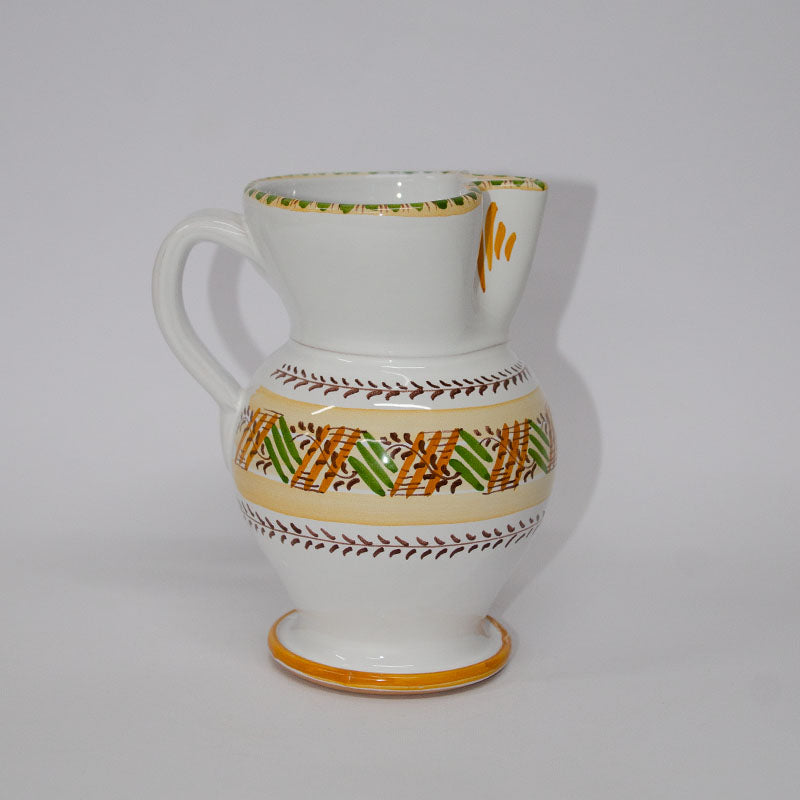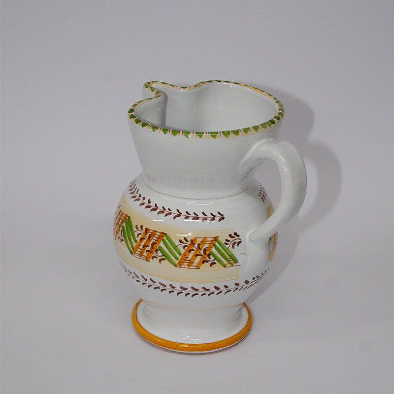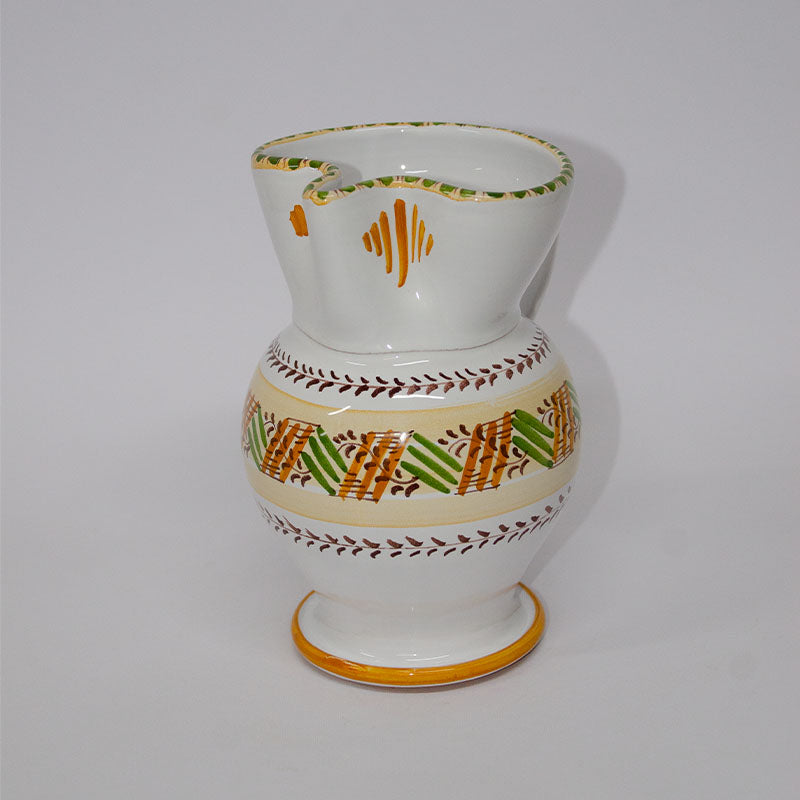 Brocca decorata a mano Grottagliese con manico, di colore bianco. Ogni singolo prodotto viene realizzato a mano con cura e passione. Se il prodotto non è disponibile, contattaci e provvederemo alla realizzazione su richiesta.