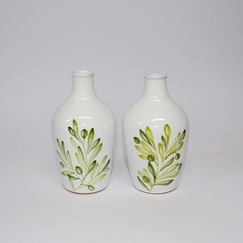 Oliera, Decorata a mano Grottagliese, di colore bianco e verde. Ogni singolo prodotto viene realizzato a mano con cura e passione. L'Oliera è dotata di tappo Salva Gocce. Se il prodotto non è disponibile, contattaci e provvederemo alla realizzazione su richiesta.