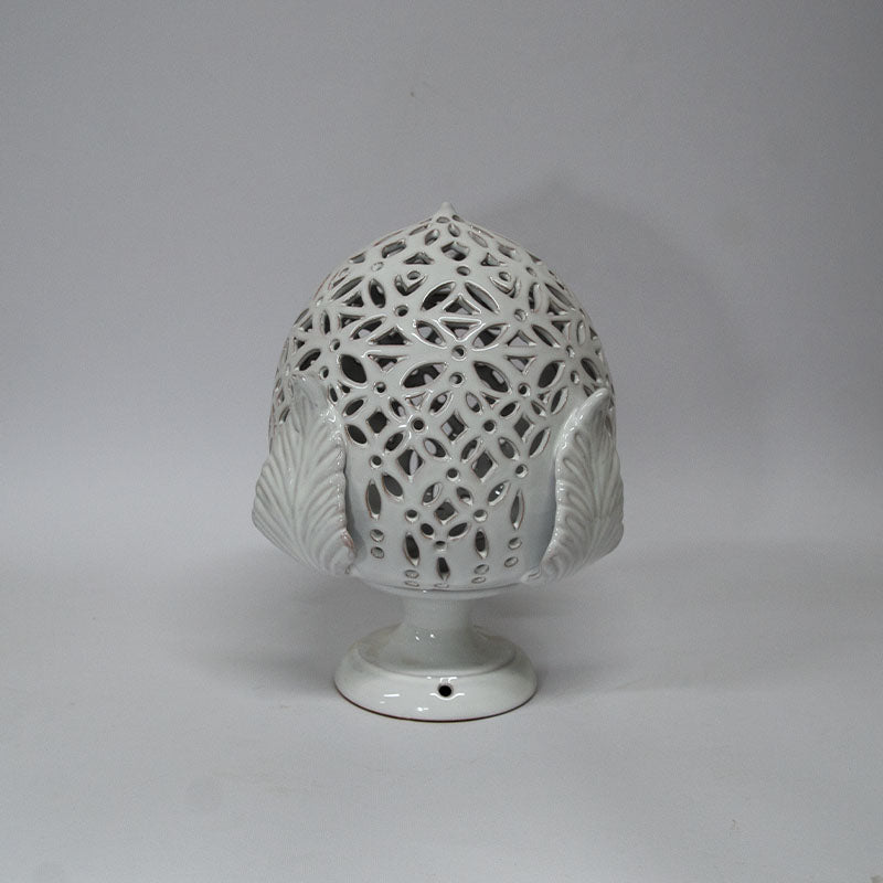Pumo Lampada Grottagliese a quattro foglie, di colore bianco . Il Pumo all'interno è dotato di portalampada , in grado di illuminare perfettamente ogni ambiente. Ogni singolo prodotto viene realizzato a mano con cura e passione. Se il prodotto non è disponibile, contattaci e provvederemo alla realizzazione su richiesta.