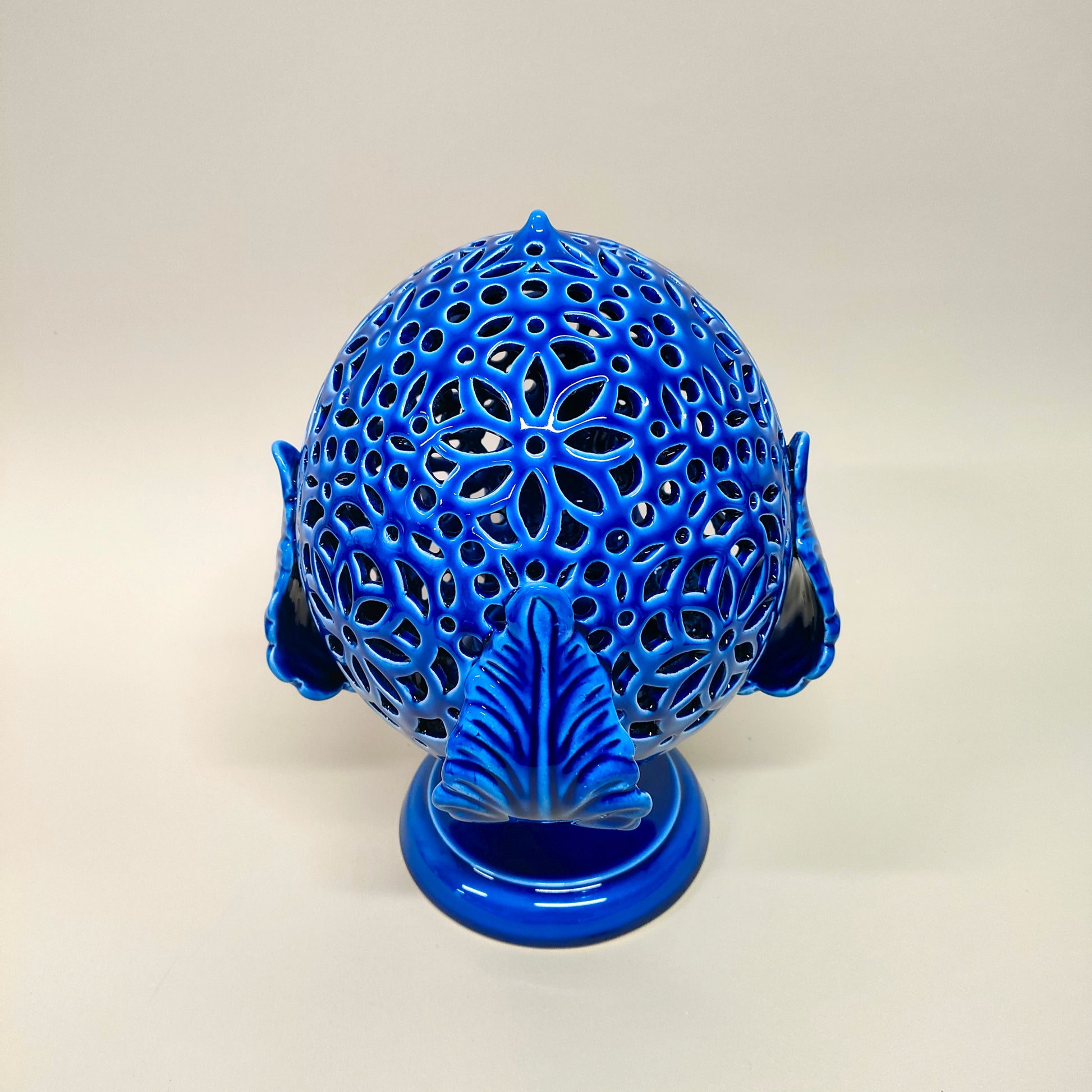 Pumo a Lampada Grottagliese di colore blu oltremare. Il Pumo è dotato di Porta Lampada con Lampadina . Ogni singolo prodotto viene realizzato a mano con cura e passione. Se il prodotto non è disponibile, contattaci e provvederemo alla realizzazione su richiesta.