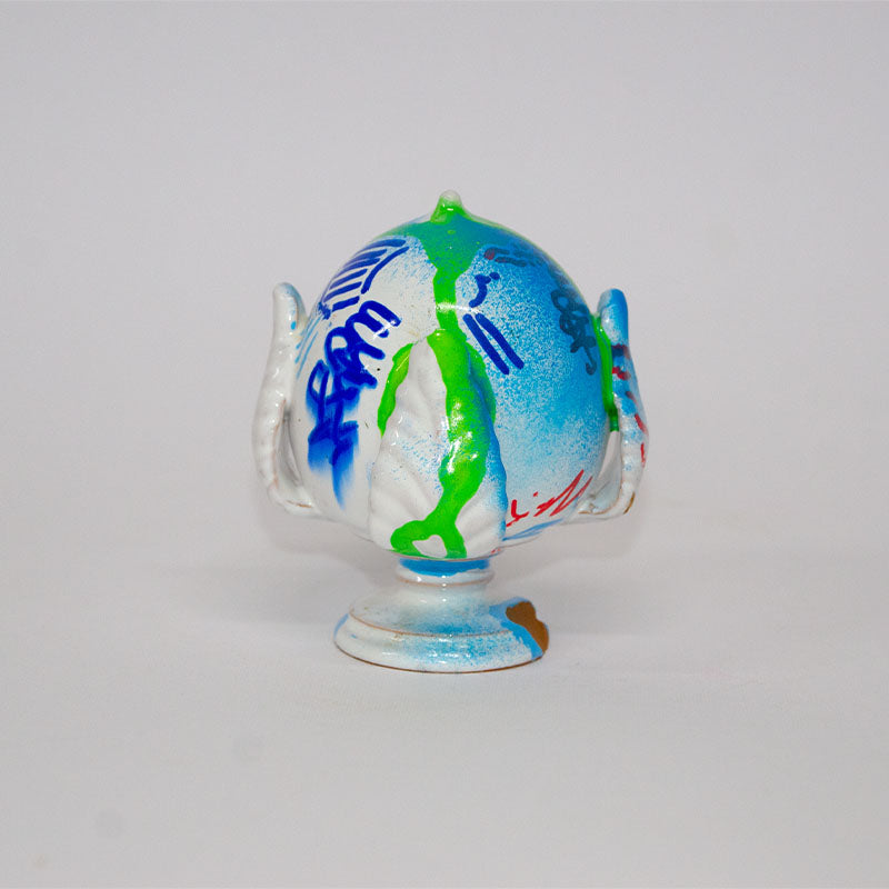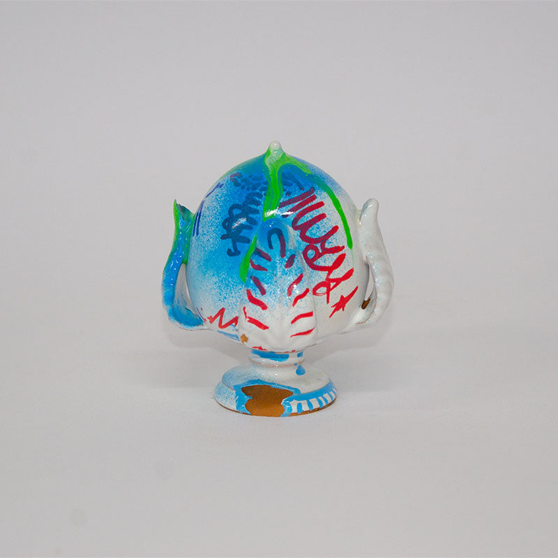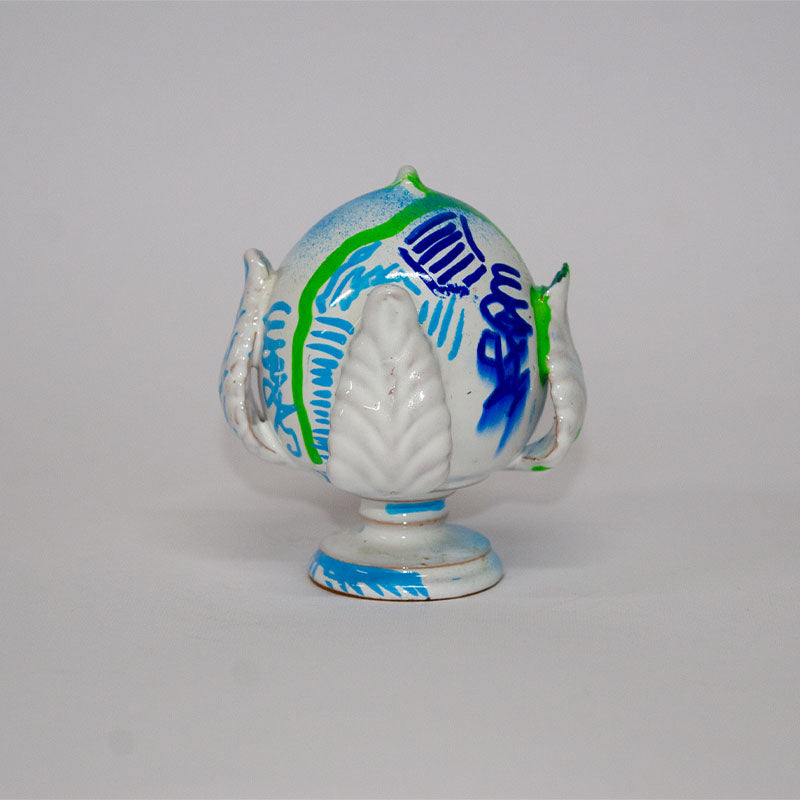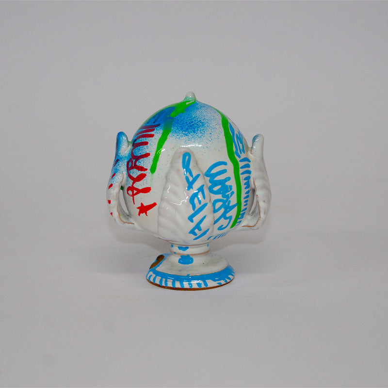 Pumo a quattro foglie, di colore bianco dipinto a mano con colori acrilici e bomboletta spray. Il Pumo presenta una lieve sbeccatura sul piede (foto n.6) e alla punta della foglia (foto n.1). Il manufatto, in origine è uscito difettato, poi ripreso con colori acrilici, gli è stata data nuova vita. Ogni singolo prodotto viene realizzato a mano con cura e passione. Se il prodotto non è disponibile, contattaci e provvederemo alla realizzazione su richiesta.