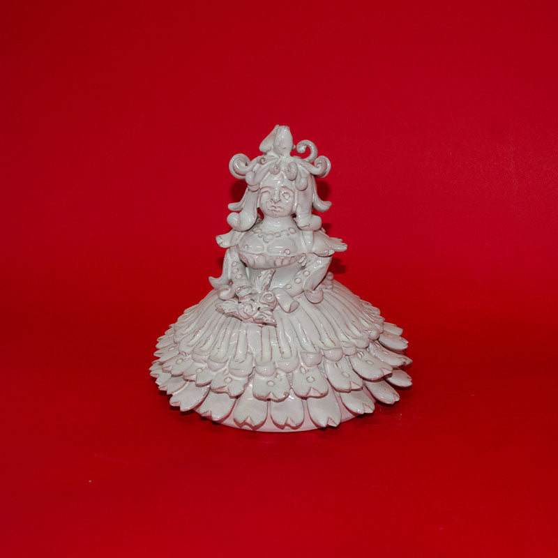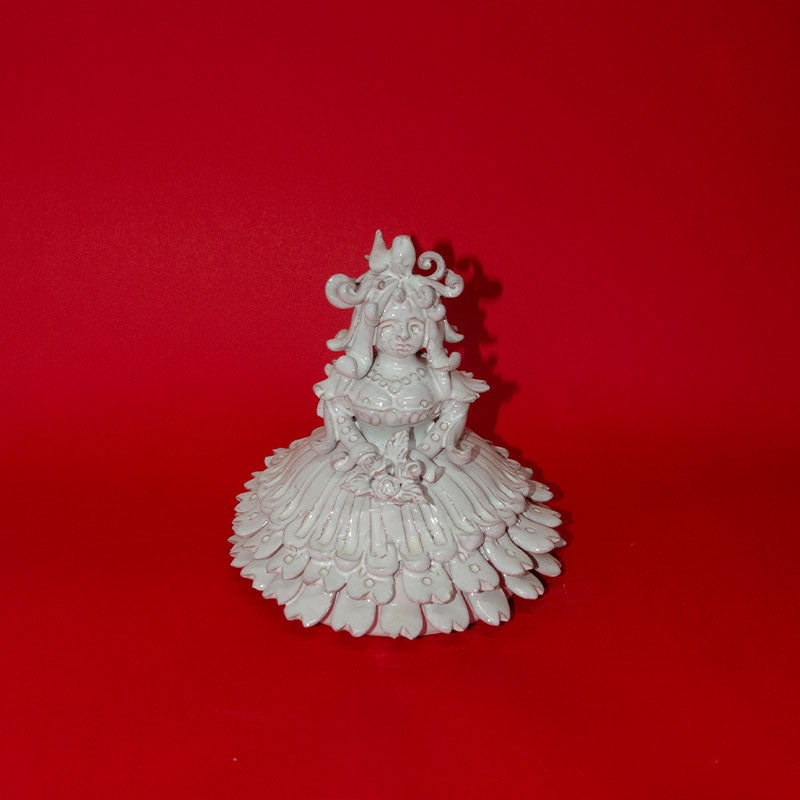 Bambola Grottagliese modellata a mano, di colore bianco . Ogni singolo prodotto viene realizzato a mano con cura e passione. Se il prodotto non è disponibile, contattaci e provvederemo alla realizzazione su richiesta.