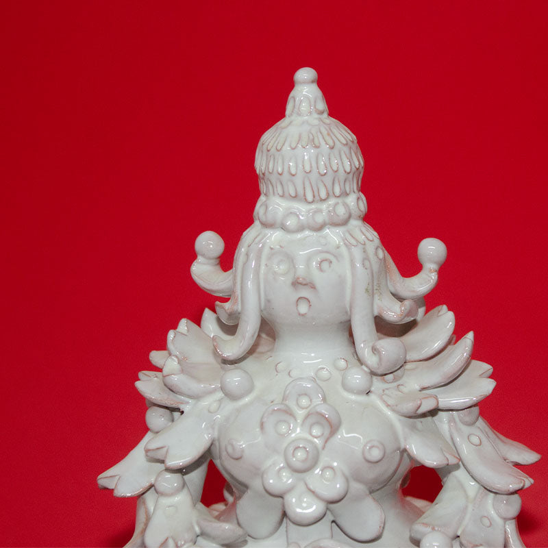 Bambola Grottagliese modellata a mano, di colore bianco . Ogni singolo prodotto viene realizzato a mano con cura e passione. Se il prodotto non è disponibile, contattaci e provvederemo alla realizzazione su richiesta.