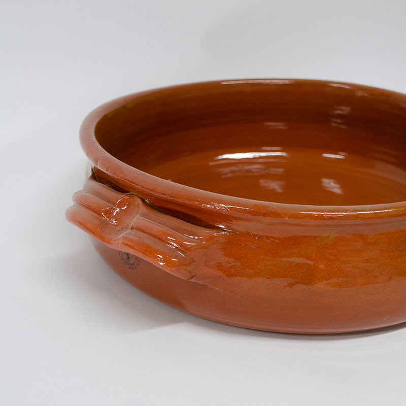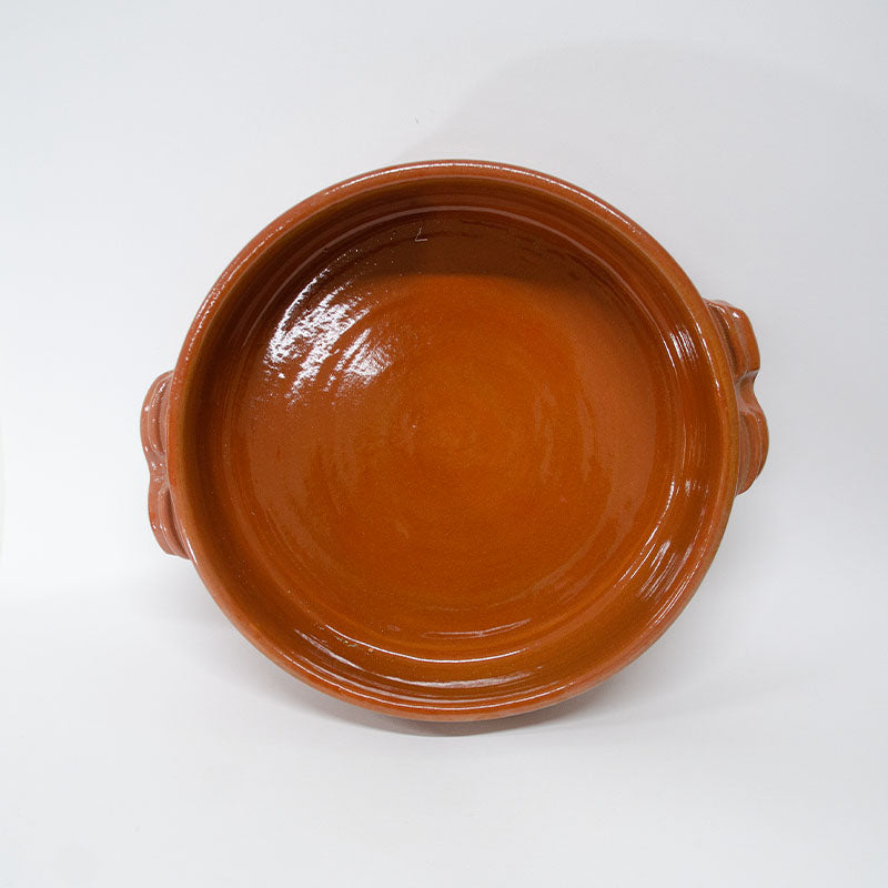 Tegame Grottagliese con manici, di colore rosso. Questo Tegame è realizzata con argilla pirofila per consentire all'utente di cuocere adeguatamente ogni singolo pasto. Per poter essere utilizzata correttamente, essa deve riscaldarsi correttamente per evitare possibili danni all'oggetto. Ogni singolo prodotto viene realizzato a mano con cura e passione. Se il prodotto non è disponibile, contattaci e provvederemo alla realizzazione su richiesta.