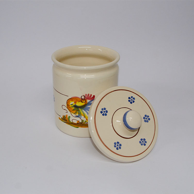Zuccheriera Decorata a Mano con coperchio e Gallo Grottagliese, di colore avorio . Quest' Oliera è dotata di tappo salva gocce. Ogni singolo prodotto viene realizzato a mano con cura e passione. Se il prodotto non è disponibile, contattaci e provvederemo alla realizzazione su richiesta.